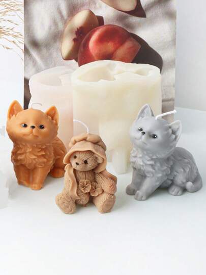 Cute 3D Smile Sitting Cat Silicone Candle Mold Cap Bear Soap Resin Mould Kitten Plaster Resin Crafts Molds Diy Ice Cubes Make Home Gifts - White - View 1