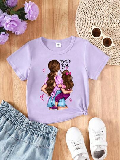 Young Girls Casual Mother And Daughter Back Print Short Sleeve Summer T-Shirt Mommy And Me Matching Outfits (2 Pieces Are Sold Separately) - Mauve Purple - View 1