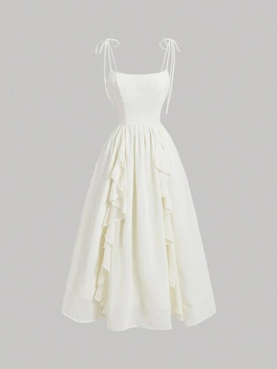 SHEIN MOD Apricot Ruffle Women's Flamenco Dress,Wedding Dress,Graduation Dress,White Graduation Dress - Apricot - View 1