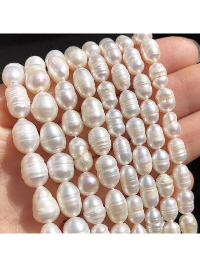 4-8mm Natural Freshwater Pearl, White Rice Shape, Asymmetrical Oval Loose Beads, Suitable For Jewelry Making, DIY Bracelet & Necklace - White - View 1