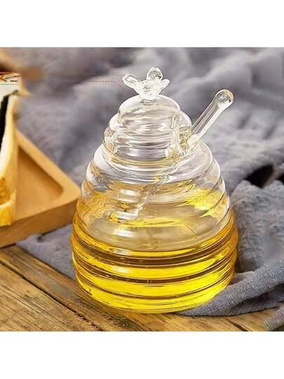 1pc 450ml Transparent High Borosilicate Glass Honey Storage Jar With Lid - 450ml - View 1