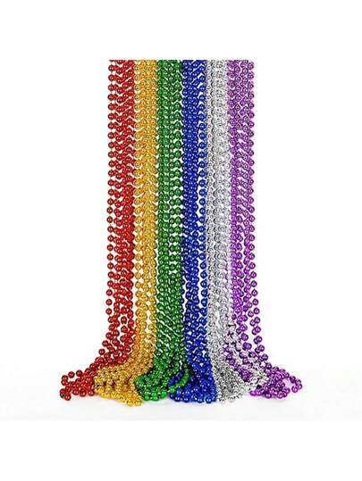 12pcs Mardi Gras Beaded Necklace, Multicolored Plastic Bead Necklace Party Costume Jewelry, Festival Decorations - Multicolor - View 1