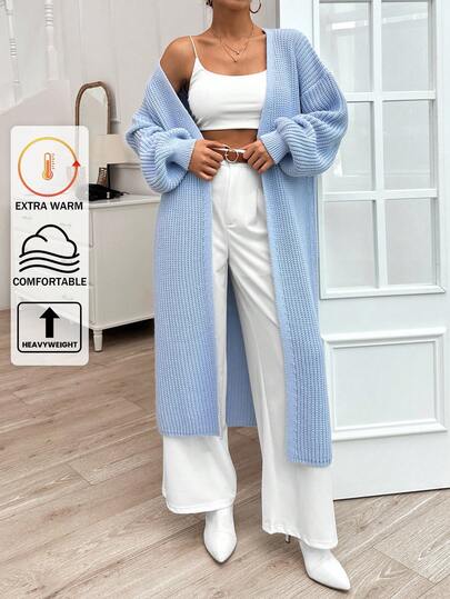 EURMUSE Plain Drop Shoulder Casual Long Cardigan, Perfect For Daily Outfits - Baby Blue - View 1