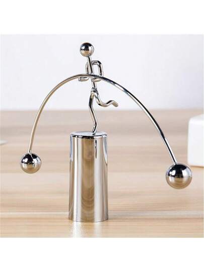 1 Pc Little Perpetual Motion Desk Art Toy: Creative Balance Ball Kinetic Weightlifting Fun Iron Art Decoration Gadget Gift,Stocking Fillers,Stocking Fillers Adults,Gadgets For Teenagers,Stocking Fillers Adults,Stocking Fillers,Gadgets For Teenagers - White - View 1