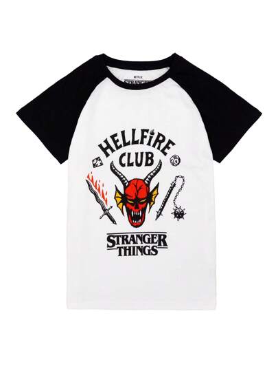 Stranger Things Childrens/Kids Hellfire Club Short-Sleeved T-Shirt (White/Black) - Black - View 1