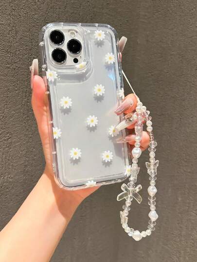 Cute Daisy Flower Phone Case Compatible With IPhone 14 Pro Max, 13, 12/12 Pro, 11, 15, 15 Pro Max, 16, 16 Pro Max, 17 Pro Max, With White Butterfly Heart Lanyard, Fashionable And Design - Clear - View 1