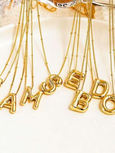 MECYLIFE 1pc High Quality Stainless Steel Women's Personalized Bubble Letter Necklace, Initial Name Alphabet Pendant Pop Jewelry - Yellow Gold - View 13