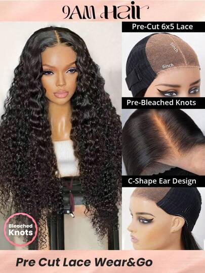 6x5 Wear&Go Glueless Deep Wave Human Hair Wig Pre Plucked Bleach Knots 30 Inch Pre-Cut Transparent Lace Closure Wigs 180% Density - SNatural - View 11