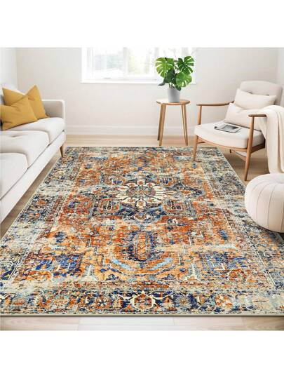 Khaki Bedding Washable Rugs Living Room Area Rugs Orange Vintage Boho Rugs Large Non Slip Carpet Moroccan Rugs Short Pile Rugs For Bedroom Dining Room Kitchen Soft Faux Wool Rugs (80x150cm,120x170cm,200x300cm) - Khaki - View 1