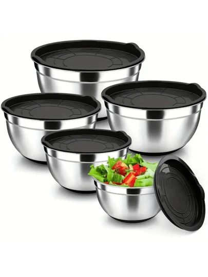 Stainless Steel Mixing Bowl Set - Nested, Airtight Lids, Heavy-Duty, And Dishwasher Friendly - Great For Baking, Serving, And Kitchen Organization - Premium Kitchen Accessory For Home Cooking Enthusiasts - Multicolor - View 1