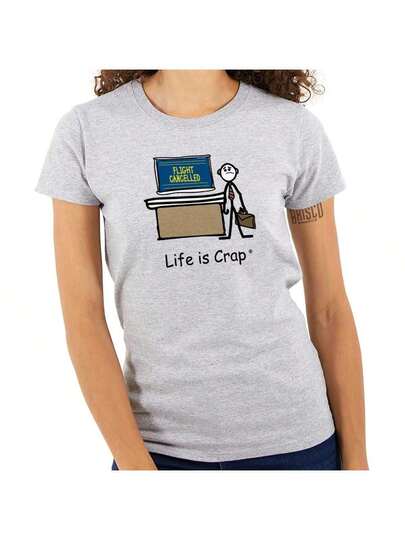 Life Is Crap Womens Fitted Graphic Tee Shirt Funny Airport Fail Sarcastic Unlucky Flight Cancelled Humor Hilarious Relatable Travel Joke Ladies Casual Slim Fit Fashion Cotton Printed Short Sleeve Crewneck Tshirt Brisco Brands - Sport Grey - View 1