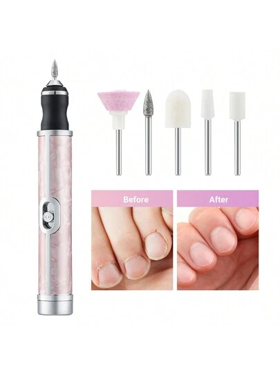 Electric Nail File Multi-Function Nail Drill Toenail Sander For Thick Nails Professional 4 Speeds Electric Nail File For Thick Toenails, Nail Polishing Nursing Peeling Removing Grinding Edge Shaping - Pink - View 1