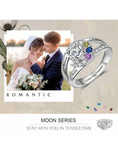 Customized Personalized Birthday Stone Inlaid Engraveable Ring With Multiple Names, Ideal For Mother's Day, Valentine's Day, Anniversary, Birthday, Christmas, Graduation, Family Occasions. High-End Gift For Friends, Classmates And Relatives. - 4 Birthstones - View 1