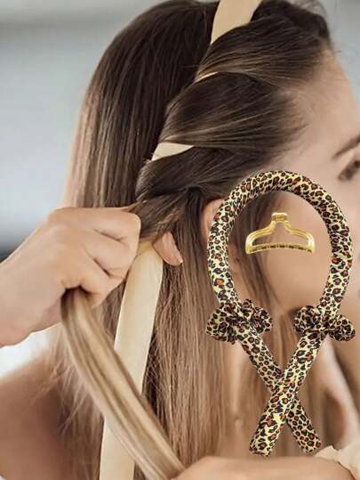 4pcs/Set Pink/Leopard U-Shaped Foam Hair Rollers For Women, Including 1 U-Shaped Roller, 2 Hair Ties, And 1 Hair Clip. For Soft And Natural Curls Without Heat, Can Be Used As Sleep Hair Rollers. Suitable For All Women, Home Use, Daily Use, Travel, Portable Hair Curling Tool. - Multicolor - View 1