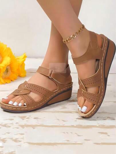 Women's New Fashion Wedge Heel Comfortable Thick-Soled Mom Sandals, Casual Open-Toe Sandals - Brown - View 1