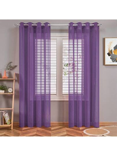 1pc Minimalist Nordic Modern Style Solid Color Sheer Curtains - Suitable For Bedrooms, Living Rooms, Hotel Rooms, Etc - Purple - View 1