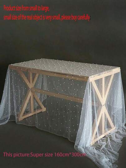 1pc 72cm X 100/200cm Elegant Faux Pearl Embellished Tulle Fabric, Suitable For Tablecloth, Wedding Decoration, Veil, Photography, Holiday Party, Gift Wrapping, Daily Table Decor. Stretchy And Elastic.,Wedding Tablecloth,Wedding Decor,Home Decor ,Room Decor, Party Favors Bride Birthday Decorations Party Decorations Bachelorette - Style 1 - View 9