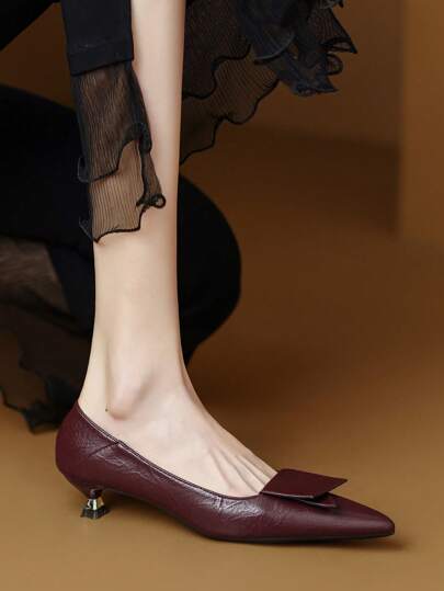Women Pointed Toe Stiletto Heel Short Pumps, Versatile Office Work Shoes For Spring Autumn,Elegant,Kitten Heels - Burgundy - View 1