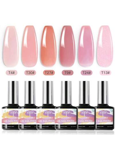 COLOURSMILE 6 PCS Gel Nail Polish Kit, Jelly Gel Polish Nude Pink Color Gel Neutral Nail Art Design Translucent Gel Nail Kits Soak Off Uv Nail Lamp Cured Nail Manicure DIY Home For Women - Multicolor - View 1