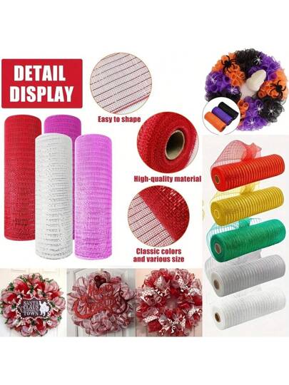 Red Metallic Mesh Red Decor Mesh 10 Inch Red Mesh Ribbon For Tree Red Mesh For Wreaths Decorative Mesh Wreath Supplies Garland Staircase Mailbox Swag Centerpiece Decorating (30 Feet) Best Gifts - Multicolor - View 17