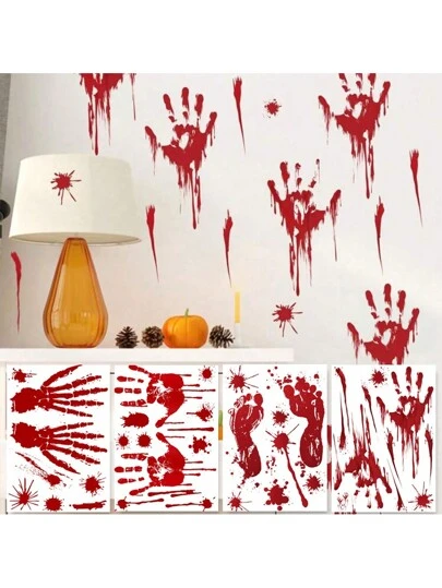 1pc/5pcs Halloween Sticker Haunted House Decoration Blood Bandprint PVC Wall Stickers Hotel Shopping Mall Halloween Party Decoration Window Stickers - Multicolor - View 10