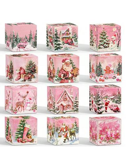 6pcs Pink Christmas Tree Themed Candy Gift Boxes, Holiday Party Decoration Christmas Christmas Decor Christmas Decorations Christmas Bags Christmas Gifts - Multicolor - View 11