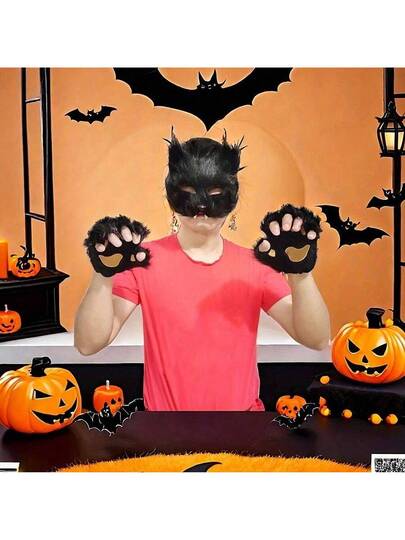 New Halloween Realistic Fox Mask,Fingerless Gloves,Furry Paw, Tail 5pcs/Set Cosplay Party Props - Multicolor - View 10