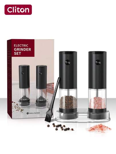 CLITON Electric Salt And Pepper Grinder Set, Automatic Salt And Pepper Grinder Set, One Handed Operation Refillable Mill With Light, Adjustable Coarseness - 2 Mills,Electric Salt And Pepper Shakers 2 Set,Battery Operated Salt And Pepper Grinder Set Battery Powered With LED Light, Electric Pepper And Salt Grinder Mill & Reffiable Adjustable Coarseness - Black - View 1