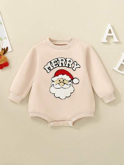 Baby Girl Cute Santa Claus Bodysuit Christmas Outfit For 0-2 Years Old Baby - Apricot - View 1