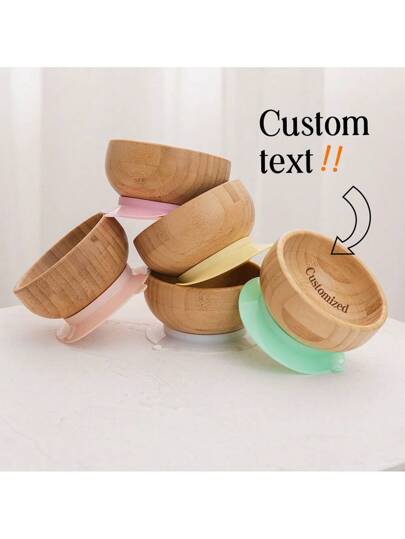 Personalized Customizable Bamboo Wooden Bowl Baby Feeding Bowl Wooden Kids Feeding Supplies For Baby Tableware Suction Round Shaped Bowl Dinnerware Product Baby Shower Family Decorations Gifts Winter Eve Gifts Back To School Winter Gift Ideas Boy Girl Valentine's Day - Multicolor - View 1