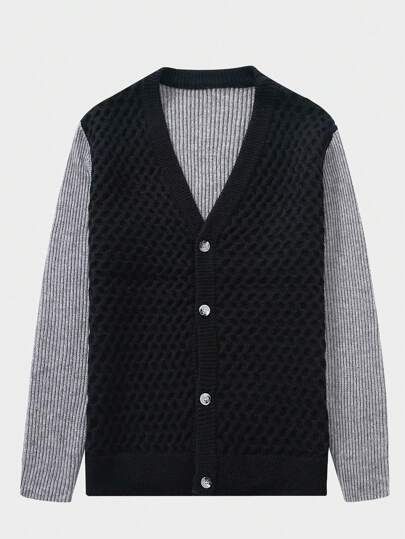 Chillumni Men's Contrast Color Long Sleeve Single Breasted Loose Casual Cardigan, Autumn/Winter - Multicolor - View 1
