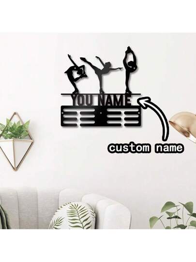 1pc DIY Metal Figure Skating Medal Display Rack, Customizable Name, Used To Display Figure Skating Medals, Ideal Gift For Figure Skating Enthusiasts, Valentine's Day Decor, Multifunctional, Anti-Mold, Decorative, Exquisite, Fashionable, High-Quality, Cute, Modern, Customizable, Unique, Personalized Gift Suitable For Him, Her, Boyfriend, Girlfriend, Dad, Mom, Family, Friends, Son, Daughter, Kids - Black - View 1