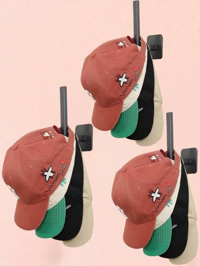 1/2/3pcs Wall Mount Hat Racks, Baseball Cap Holder- Plastic Hat Organizer With Adhesive Hooks, No Drill Needed, Kitchen Storage Hook, Wall-Mounted Multifunctional Hook For Coats, Towels, Bags, Keys, Ideal For Doors, Closets, Bedrooms, Offices - Black - View 3
