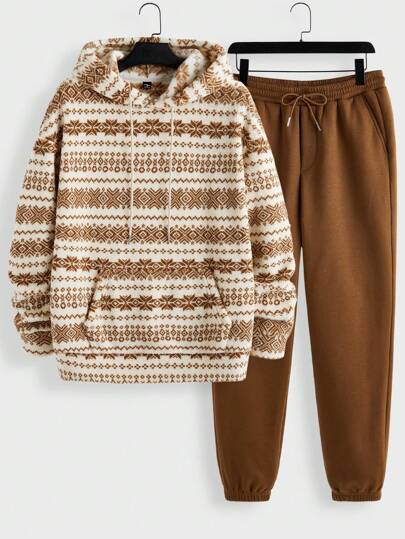 Manfinity VCAY 2pcs Men's Loose Shoulder Knit Sweatshirt & Pants Sweatsuit Set - Multicolor - View 1