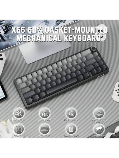 ATTACK SHARK X66 Gasket Wireless Mechanical Keyboard With Volume Knob,60% Bluetooth/2.4GHz/Wired Gaming Keyboard,RGB Backlit,OEM Tri-Color PBT Keycaps,66 Keys Hot Swappable For PC/ - Many - View 1