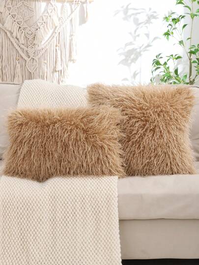 Faux Wool Pillow Covers, Solid Color Decor For Living Room And Bedroom,Fall Decor,Autumn Decor,Room Decor - Brown - View 1
