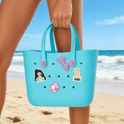 Barbie Large Capacity Tote Bag, Cute Sunshine Glitter Series Beach Bag, Kawaii Picnic Handbag, EVA Perforated Lunch Bag, Storage Bag, Anime Decor Gift - Blue - View 1