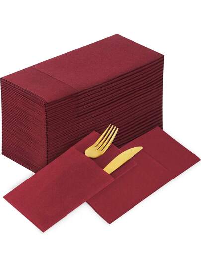 10pcs/50pcs Red Disposable Linen Touch Pre-Folded Pocket Napkins, For Wedding Decoration, Dinner Party, Cocktail Event, Hotel - Burgundy - View 8