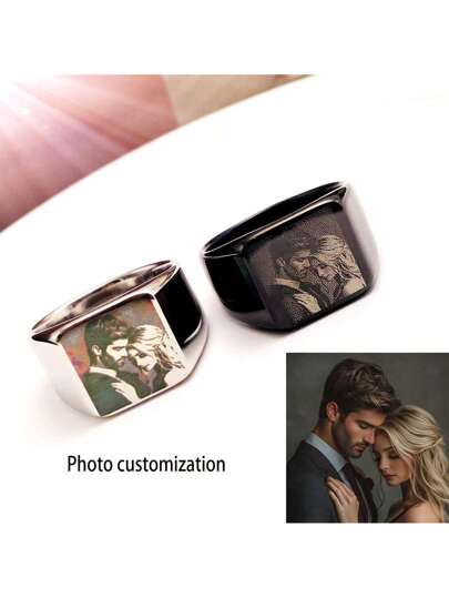 Customized Photo Printed Rings For Men & Women, Preserve Memorable Moments, Popular Gift Choice For Holidays - Multicolor - View 1
