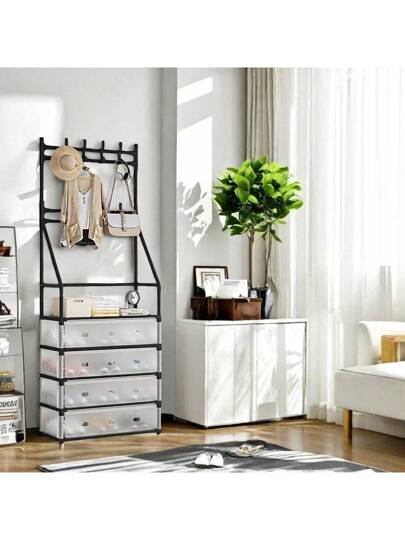 1pc Simple Shoe Rack Multi-Function All-In-One Coat Hanger With Storage Cabinet, Assembly Required, For Entryway Home Use - White - View 5