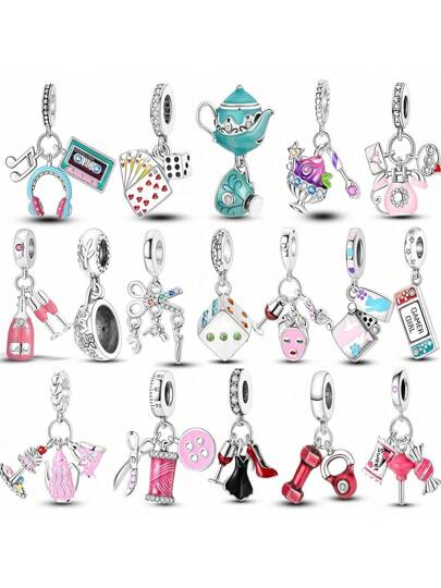 1Pc Silver Color Exquisite Modern Life Collection Champagne Phone Game Machine Lighter Candy Dumbbell Bead Charm Suitable For Original Bracelet Necklace Bangle Copper Silver Plated Diy Jewelry Making Beads Party Daily Wear - Silver - View 23