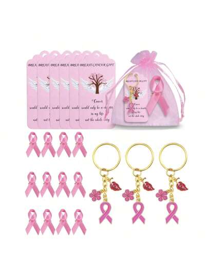 20pcs Breast Cancer Promotional Accessories, Breast Cancer Women's Inspirational Gifts, Women's Pink Breast Cancer Promotional Decorations, Red Ribbon Brooches,Including Transparent Gauze Bag And Greeting Card, Women's Love Friendship Party Encouragement Gift,Car Keychains Car Accessories Bag Charm School Cute Goth Y2k Halloween Accessories Teachers Day Bag Accessories Lanyards With Id Holder Car Accessories Bag Charms - Multicolor - View 1