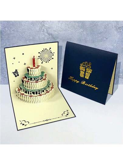 1pc 3D Pop Up Handmade Papercut Greeting Card, Creative Paper Sculpture Cake Birthday Blessing Small Gift - Multicolor - View 1