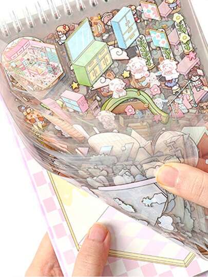 3D Landscape Sticker Book, Dream Town Story And Simulation Life Series Miniature Scene Sticker Book, Suitable For Cutting And Pressing, Relaxing Choice, Perfect Gift For Family And Friends,School Supplies,Back To School - one-size - View 1