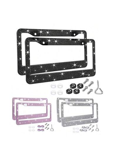 1pc/2pcs Rhinestone Bling Car License Plate Frame, Stainless Steel Handmade, With Shining Crystal Screw Caps & Installation Tools, Fit For US License Plate Size, Waterproof & Rustproof Auto Accessories - 2pcs - View 1