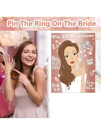 93pcs Bridal Shower Game Includes Ring Toss, Bridal Shower Decoration Game, Party Game, Fun Bachelorette Party Game, 1 Poster, 6 Double-Sided Tapes, 2 Blindfolds, 84 Stickers - Multicolor - View 1