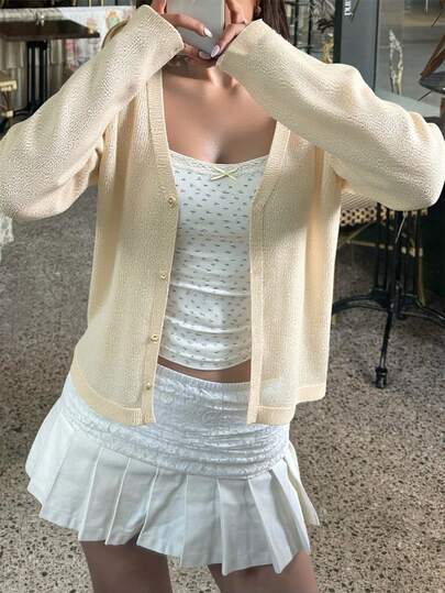 Women's Spring/Summer Korean Style Simple Casual Loose Fit Long Sleeve Cardigan - Apricot - View 1