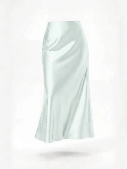 Women's Fashion Elastic Satin Feeling Satin Maxi Skirt, Suitable For All Seasons - Light Green - View 1