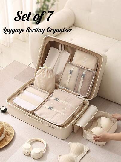 7pcs Travel Portable Luggage Packing Cubes College Dorm Essentials, Stuff Bag Storage Bag Clothes Storage Clothes Organizer Travel Bag Set Travel Organizer Set For Travel College Dorm School Vacation Holiday Suitcase Luggage Back To School Travel Essentials Travel Accessories - Multicolor - View 1