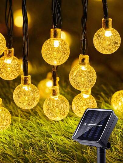 1pc Outdoor Solar Crystal String Light 38.99/22.59/15.99/10FT 10/20/50/100LED, Outdoor Solar Crystal String Light, Solar Crystal Ball Light, Spring, Summer, Garden, Lawn, Terrace, Pavilion, Courtyard, Christmas Decoration, Mother's Day,GiftBest Mom,Women,PartyDecoration - Warm White - View 1